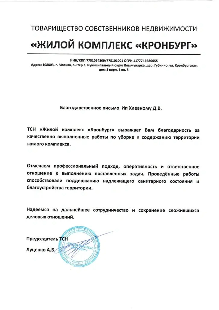 Отмечаем профессиональный подход, оперативность и ответственное отношение к выполнению поставленных задач. Проведённые работы способствовали поддержанию надлежащего санитарного состояния и благоустройства территории. Надеемся на дальнейшее сотрудничество и сохранение сложившихся деловых отношений.